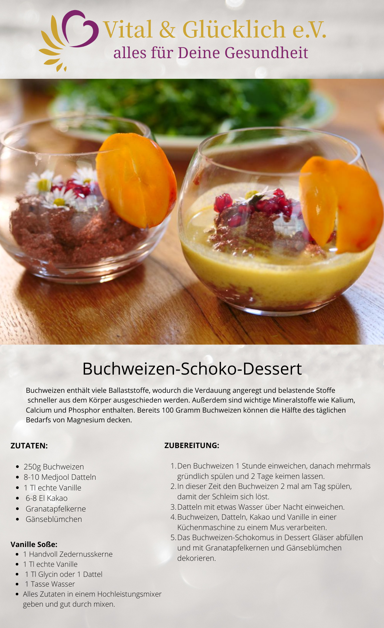 Buchweizen Schoko Dessert mit Vanillesoße. Dieses Rezept ist mega schnell zubereitet und einfach köstlich & gesund